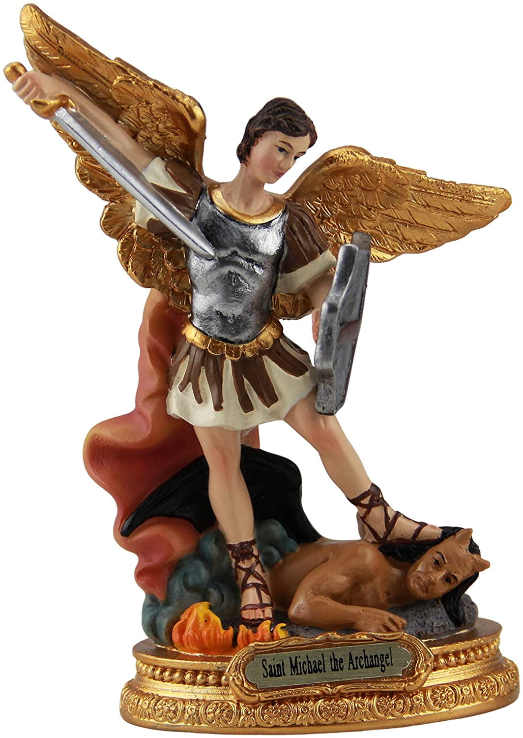 Amazon Com Ebros Ivory Finish Holy Archangel Saint Michael With Chained Lucifer Statue 5 Tall The Protector Warrior General Of God S Army Sacrament Of Holy The Eucharist Collectible Figurine Home Kitchen